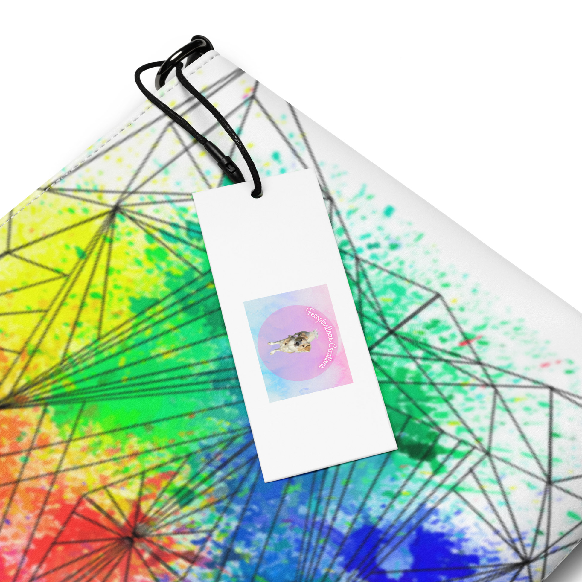 Elevate your style with this stunning faux leather Feespirations Geo™ crossbody bag, featuring an eye-catching geometric pattern inspired by my hand-designed coloring book. Perfect for daily wear, this bag seamlessly blends modern aesthetics with timeless sophistication. With a zip-top closure and multiple inside pockets, you can keep your essentials secure and organized.