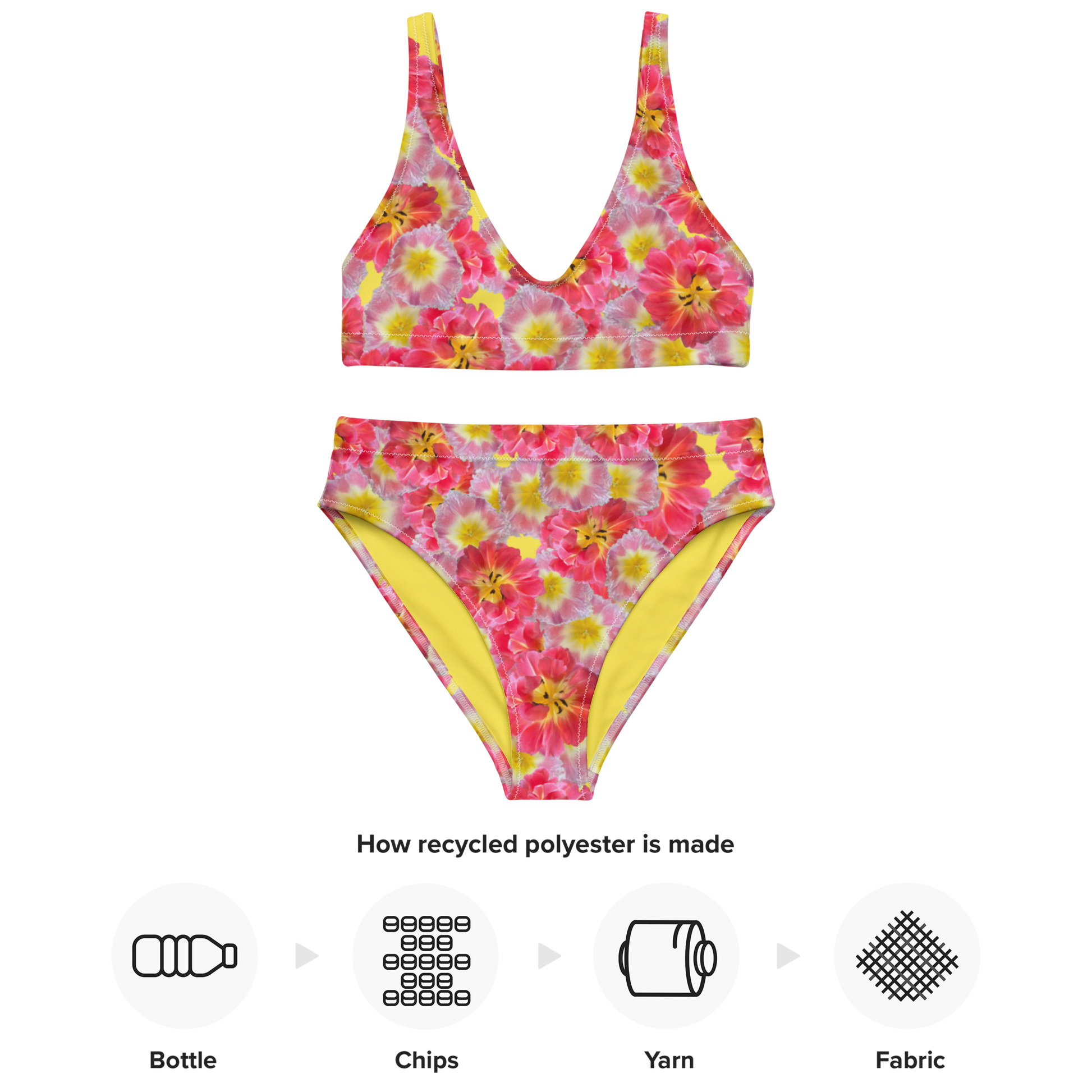 Dive into style with this stunning yellow high waisted bikini featuring a vibrant pink flower collage created from my original photographs. The collage is carefully pieced together to bring you a unique and eye-catching design that adds a touch of nature's beauty to your beach look. Perfect for anyone who loves art-inspired swimwear and wants to make a splash this summer.